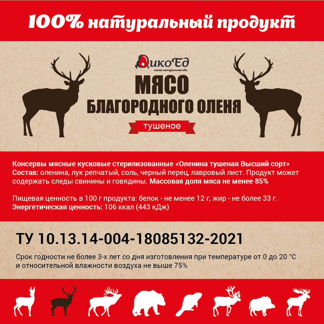 Рекомендуем вместо Тушеное мясо Европейского оленя (тушенка из оленины)