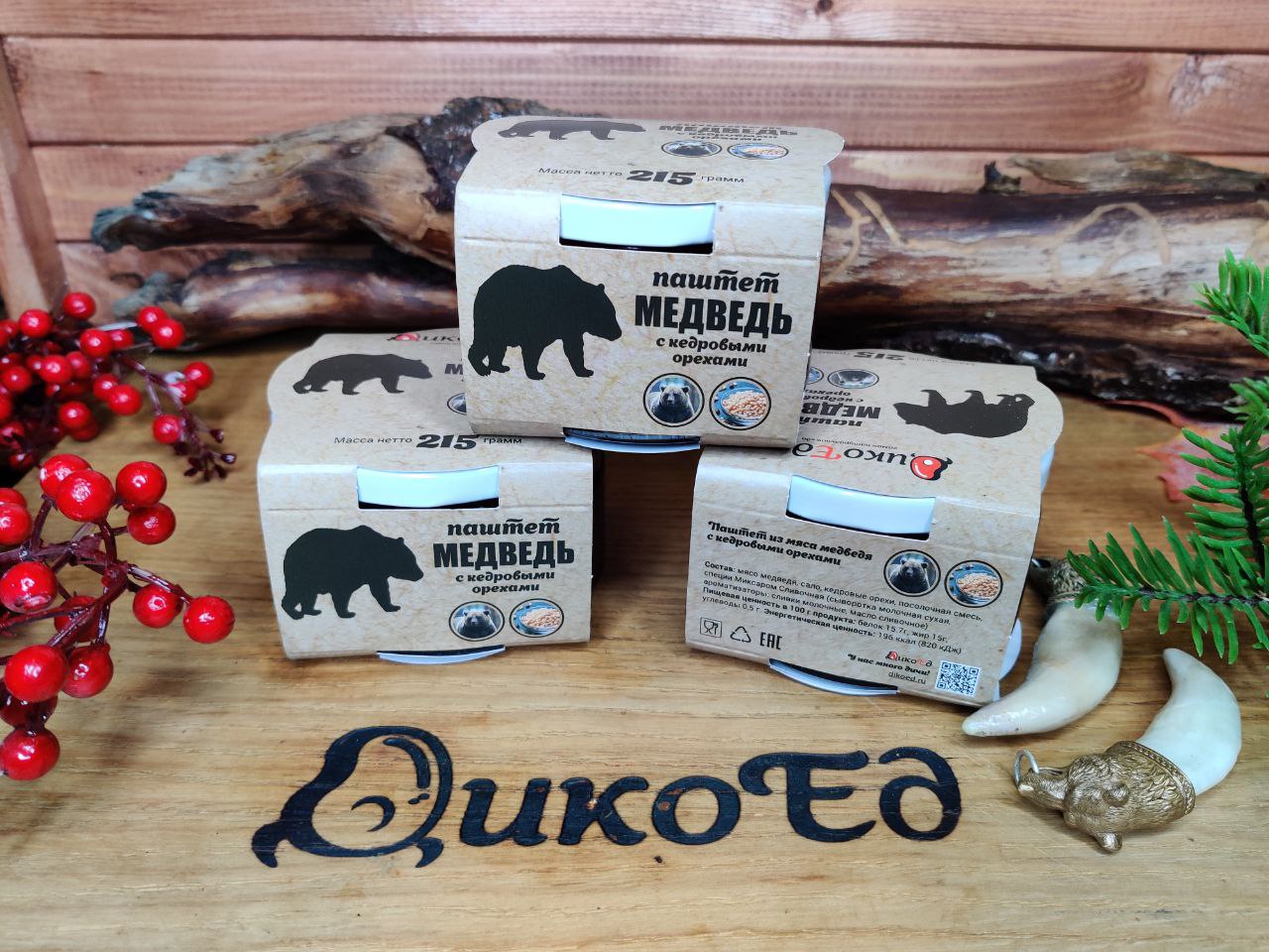 Состав: мясо медведя, сало кабана, кедровые орехи, соль, сух.специи (сыворотка молочная сухая, ароматизаторы: сливки молочные, масло сливочное)
